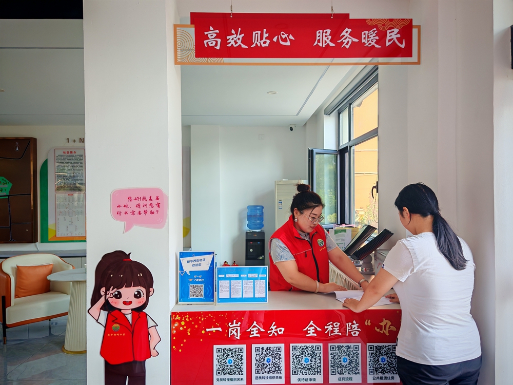 在新华西街社区1004平米的党群服务中心内,设有新时代文明实践站、1+N社会组织工作室、多元调解中心、儿童之家、心理解压室等,为居民提供多元服务。同时,社区 对服务大厅进行了重新布局,将原来按业务划分的多个单一窗口整合为综合性服务窗口,建立“首问责任制”,实行值班轮岗制度,大厅常态保留1名“全岗通”人员做好接待和办理各类业务,居民办事更加便捷高效,服务满意度显著提升。