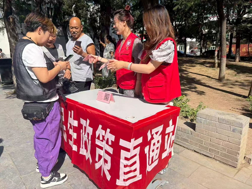 公益互动区:围绕“久久公益节”主题,社区设置了公益政策宣传、爱心倡议、技能培训三大环节。志愿者向现场群众普及公益捐赠、困境帮扶等政策,号召大家关注身边需要帮助的群体;艺术团成员还与居民分享自身成长故事,传递“公益不分大小,行动即是力量”的理念,不少居民现场报名技能培训。