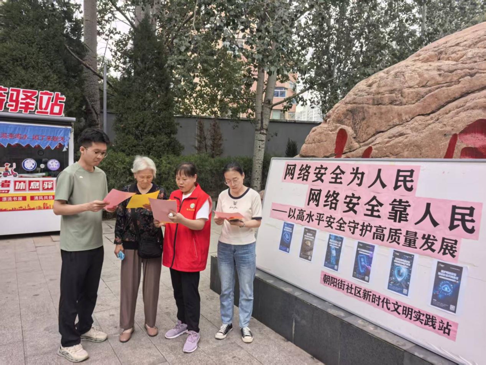 文明山西网讯 9月15日,为响应2025年国家网络安全宣传周“网络安全为人民,网络安全靠人民——以高水平安全守护高质量发展”主题,阳泉市城区南山路街道朝阳街社区在牡丹园广场开展网络安全宣传活动,旨在提升居民网络安全意识、增强防诈骗能力,营造安全健康文明的网络环境。