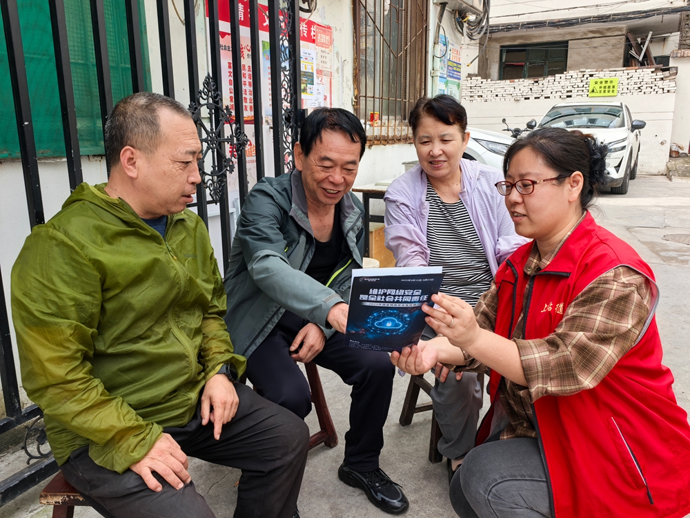 随后,志愿者又来到小区内。在一处居民聚集的地方,几位居民围坐在一起,工作人员向他们展示印有“维护网络安全 营造良好网络环境” 字样的宣传册,详细介绍网络安全的重要性以及日常生活中需要注意的网络安全要点。
