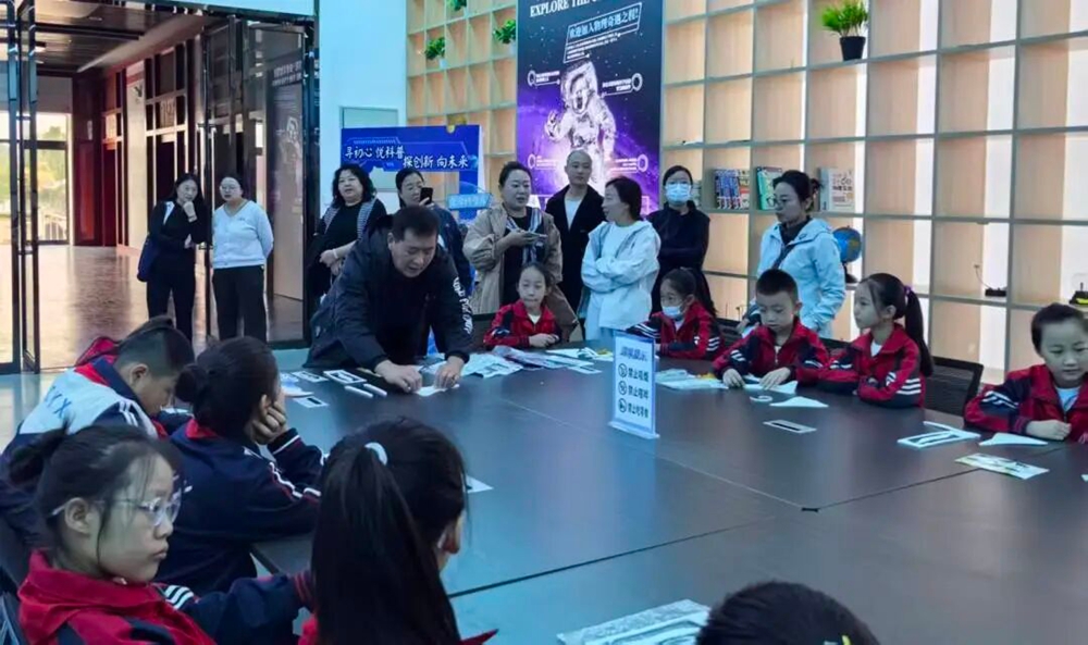 在殷老师的耐心指导下,大家纷纷开始动手制作。科普志愿者为参与者们提供必要的帮助和材料。现场气氛热烈非凡,欢声笑语与专注的神情交织成一幅充满活力与创造力的画卷。孩子们团队合作齐心协力,共同攻克制作过程中遇到的一个又一个难题。