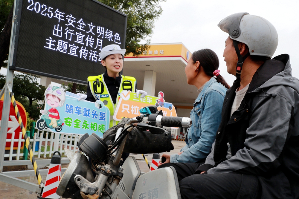 文明山西网讯 9月23日,为深入持续营造绿色、和谐、平安、文明的道路交通环境,进一步提升全社会文明出行素养,运城市公安局盐湖分局交警大队宣传科辅警结合“百日行动”大宣传工作要求,走进辖区圣惠北路加油站开展“绿色出行 文明交通”主题宣传活动,积极倡导广大群众自觉遵守交通法规,携手共建共享低碳环保、安全有序、文明畅通的交通环境。