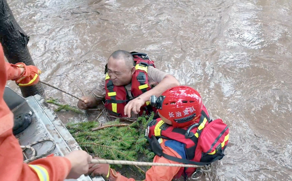 1938年,沁源抗日军民在日寇封锁下冒死从“狼窝”抢粮保民生 ;2025年,同样的土地上,消防指战员以血肉之躯在灾害现场筑起生命防线。今年8月,沁源县遭遇持续暴雨天气,导致道路水位急剧上升,一名男子不幸被困水中,生命安全受到严重威胁。接到报警后,大队迅速响应,立即出动2辆救援车、10名救援人员赶赴现场。