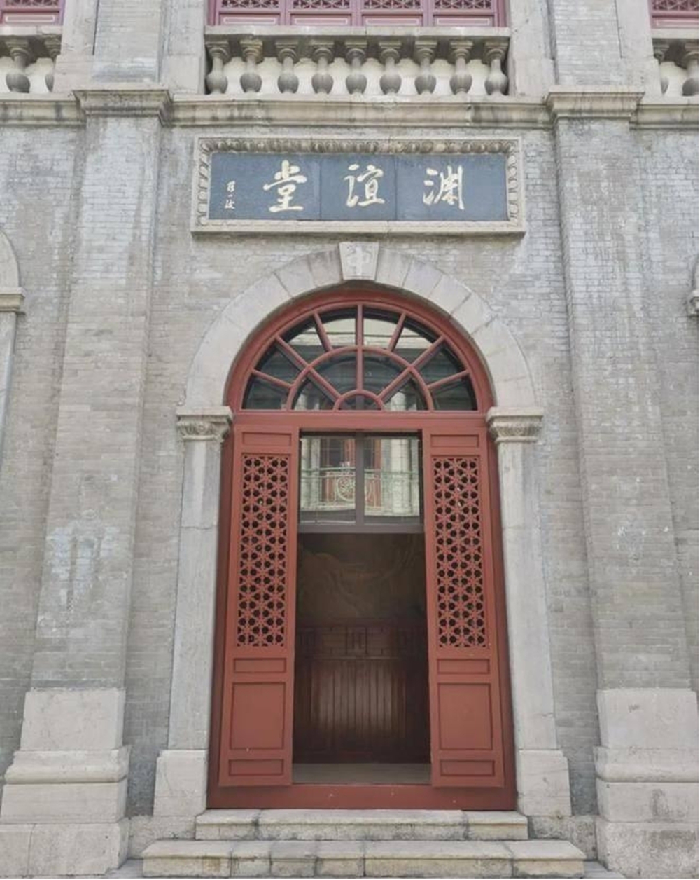 1986年,山西省政府对一号楼进行内部改造,请山西定襄籍的中央领导薄一波亲笔题字。薄一波挥笔写下了“渊谊堂”。从此,一号楼成为“渊谊堂”,用白色大理石描金字镌刻并镶嵌于二楼圆窗上方,同时在北入口圆拱门的门头上,也同时镶嵌了黑底金字的“渊谊堂”石匾。