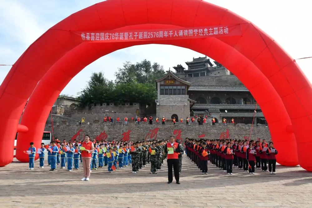 文明山西网讯 9月25日,黄河之滨的碛口古镇迎来了一场意义非凡的文化盛宴。由临县新时代文明实践中心主办,碛口镇新时代文明实践所、临县五中承办的“临县喜迎国庆76华诞暨孔子诞辰2576周年千人诵读国学经典”活动在碛口古镇广场举行,吸引了众多民众前来参与,共同感受传统文化与爱国情怀的交融碰撞。