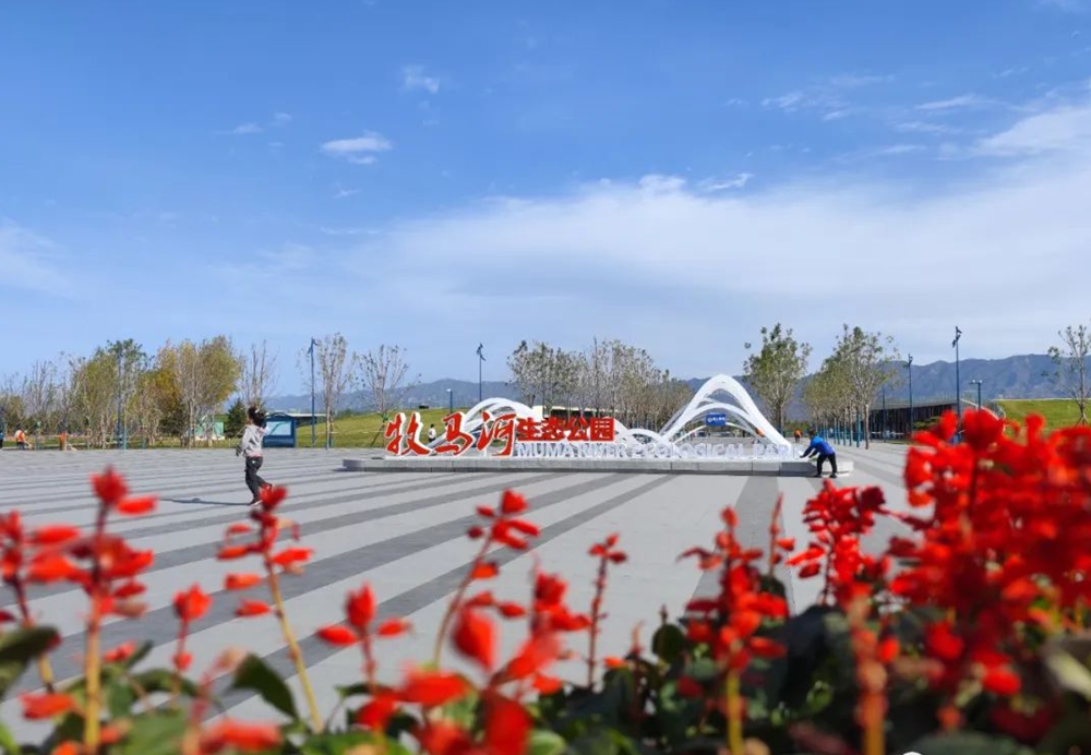 城市文明的和风已然吹到了这里。2022年,牧马河生态公园项目正式开工建设,历经三年已基本竣工。项目成功恢复河滩湿地87公顷,完成景观绿化86.49公顷,区域绿地覆盖率超80%。曾经垃圾遍地、水源枯竭的“臭水河”,如今已蜕变为水质清澈、植被葱郁、风景秀丽的生态长廊。