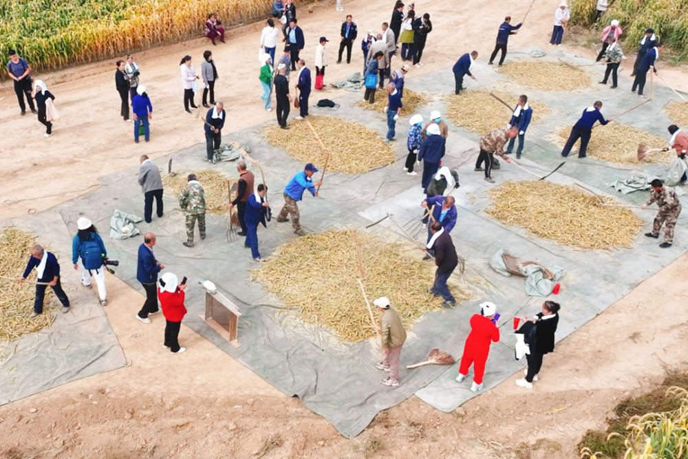 这次活动以“千人秋收享秋实 共话人间好丰景”为主题,围绕阳曲特色农产品小米,将东黄水小米打造成沉浸式丰收节舞台,通过开展群众喜闻乐见的文化演艺活动与农事体验活动,直观展现农民丰收的喜悦和农业发展的丰硕成果,勾勒出千人收秋、礼赞丰收的热闹场景。活动精心设置六大版块,覆盖“看、赛、赏、购、品、传”六大体验维度,分为农耕展示区、谷子秋收赛、丰收大舞台、新小米市集、千人小米宴、黄土地直播间,全方位激活丰收节的趣味性与参与感。其中,谷子秋收赛是这次活动的“农事亮点”,广泛邀请小米种植户、农技专家、嘉宾及游客共同参与,围绕掐谷穗、筛谷粒等关键农事环节设计体验项目。
