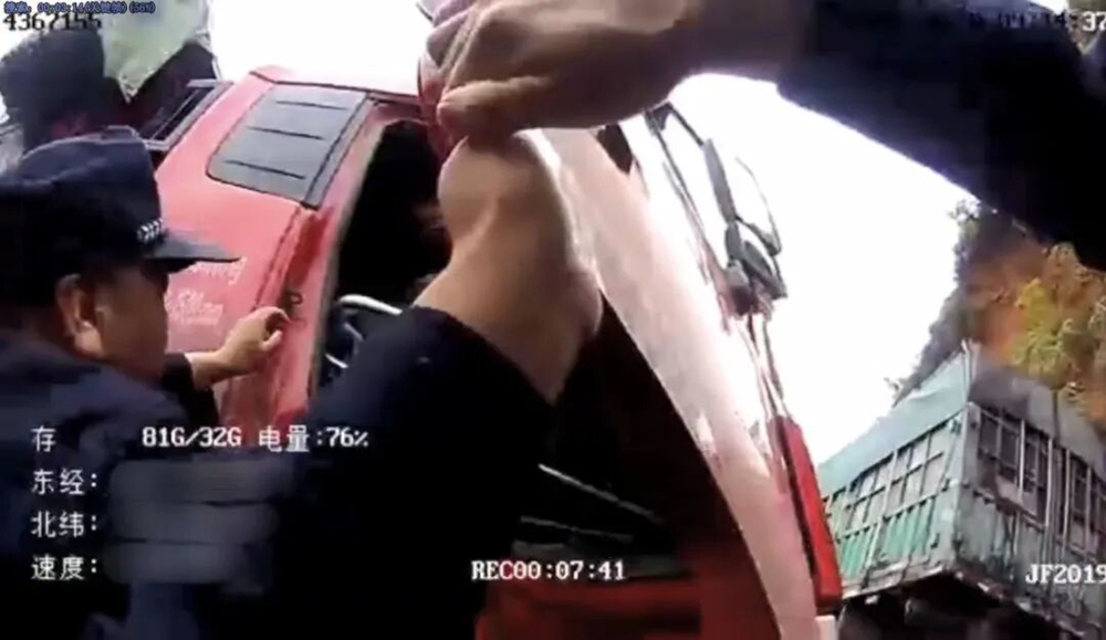 国道险情,交警秒变“推车工”