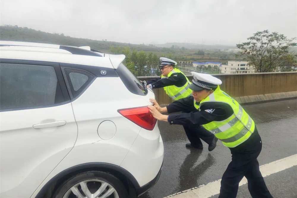 “警察同志,我的车抛锚了...”10月11日,交管大队民警在208国道某段发现一辆故障车辆,车主正站在雨中手足无措,身旁车流穿梭,险象环生。