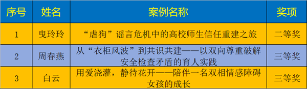 文明山西网讯 近日,在刚刚结束的2025年山西省高校辅导员工作优秀案例征集评选活动中,大同师范高等专科学校专职辅导员曳玲玲、周春燕、白云,凭借扎实的工作基础、创新的工作方法和显著的育人成效,从全省众多高校辅导员中脱颖而出,分别荣获二等奖1项、三等奖2项,充分展现了该校辅导员队伍的专业素养和育人水平。
