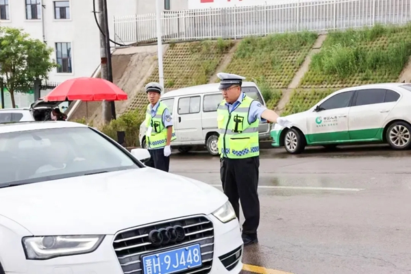 交通事故处理民警全员备勤,设置巡逻勘测车,确保考点周边事故“快处快撤”,杜绝因事故引发拥堵并配备清障车随时待命,快速清除路障。