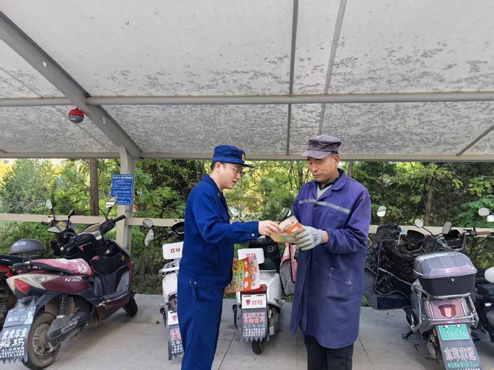 活动中,消防宣传员通过发放手册、现场讲解和案例警示等方式,向居民普及电动自行车安全使用常识。宣传员结合近期火灾案例,详细讲解了违规操作的危害性,并重点强调了规范停放和充电的重要性,提醒居民切勿在楼道、室内等密闭空间充电。
