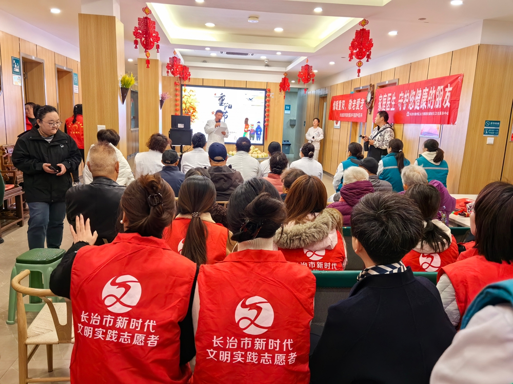 文明山西网讯 10月25日,长治市太西医养照护院内热闹非凡,太西社区、蒲公英团队、和平医院中医科、市12345政务热线单位携手开展重阳节系列活动,为院内老人送上专属关怀。