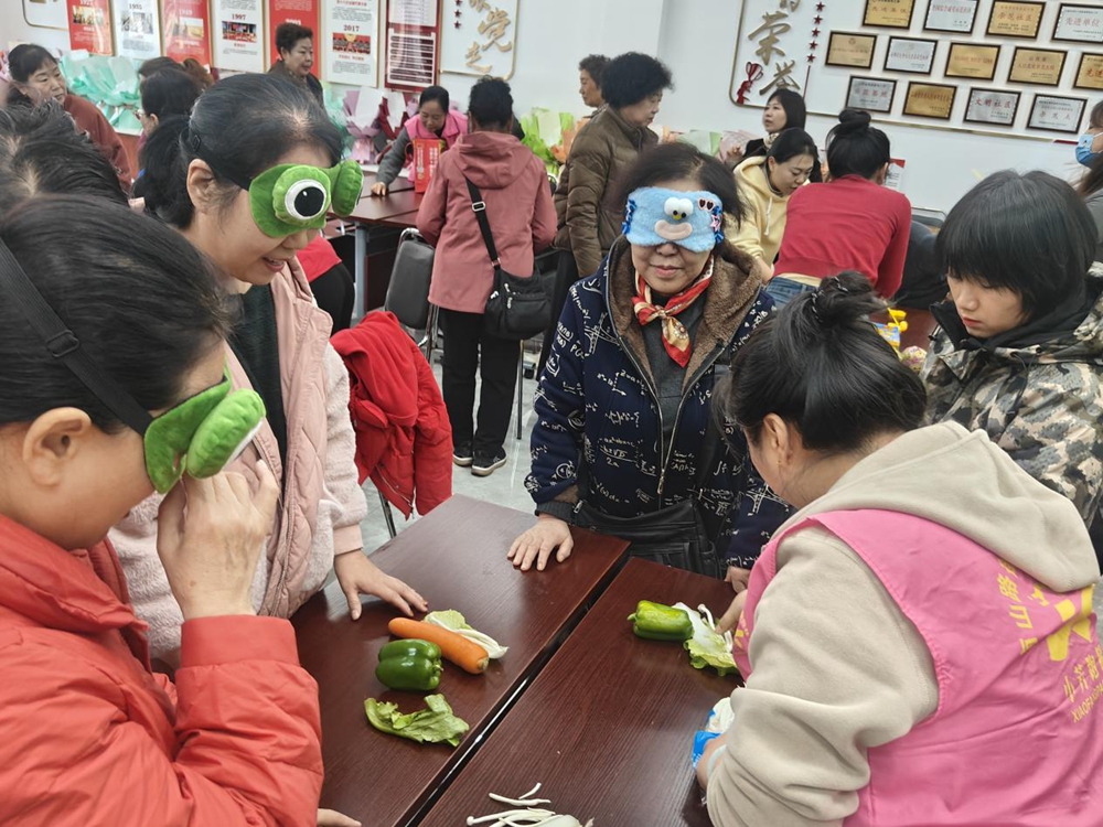 室内桌面游戏区,打石子、打弹珠等经典游戏唤醒了长辈们的童年记忆,大家凝神聚力,手指灵活操作,仿佛回到了无忧无虑的少年时代;“蜜蜂钓鱼”“蔬菜花束DIY”游戏中,长辈们各展身手,或专注粘取彩球,或巧妙搭配蔬菜制作创意花束,现场充满了欢声笑语。趣味游戏区同样精彩,“赶猪进笼”里,长辈们手持扇子驱赶“气球猪”,步伐稳健又不失灵动;“小马过河”时,大家小心翼翼护着脚面的沙包,稳步迈向终点;“赛青蛙”游戏中,上弦发条青蛙蹦跳向前,引得众人阵阵喝彩;“我来比划你来猜”环节,搭档间默契配合,生动的肢体语言与精准的猜测让现场掌声不断。