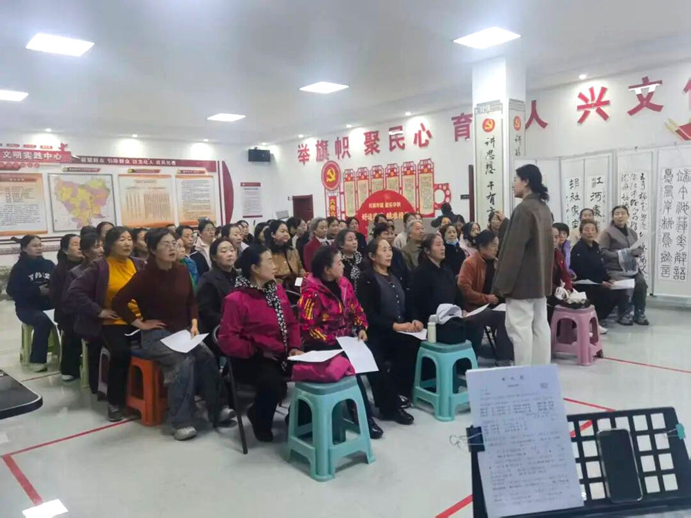 除了基础教学,课程还结合临县地方文化特色,选取了《女人花》《黄河谣》等具有本土韵味的歌曲作为练习曲目,让学员在学习声乐的同时,感受家乡文化魅力。现场,学员们跟着老师的节奏认真练习,时而轻声跟唱,时而放声高歌,活动室里回荡着悠扬的歌声和阵阵欢笑。不少年轻学员还拿出手机录制教学视频,方便课后复习,更主动组建了“益起唱”交流群,分享学习心得。