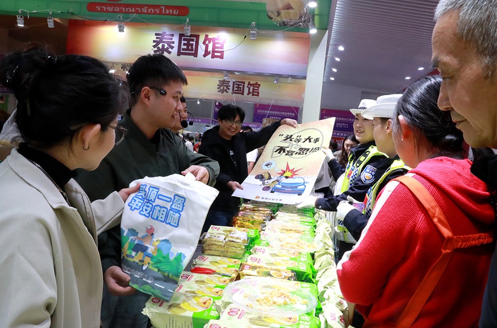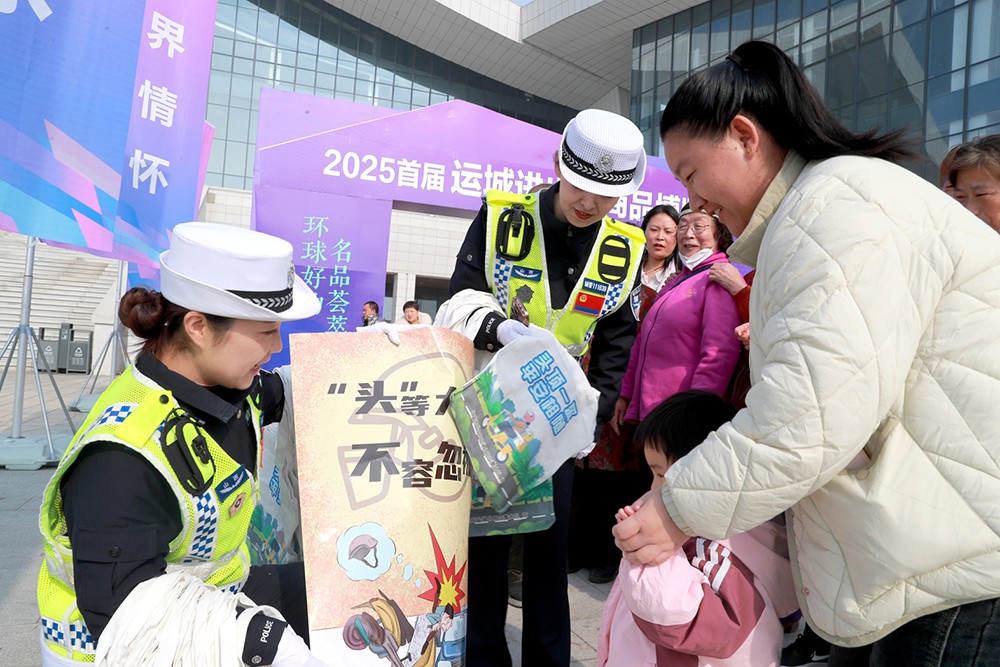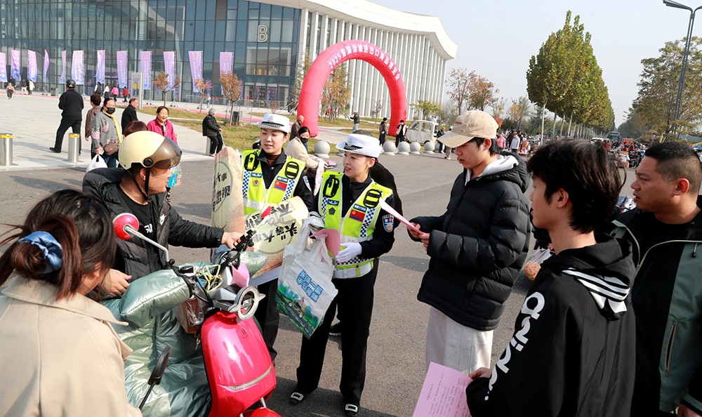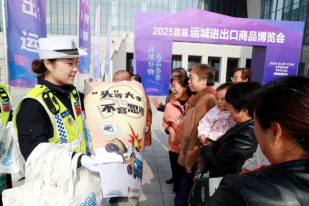文明山西网讯 11月4日,运城市首届进出口商品博览会在运城市会展中心如火如荼进行,引来众多群众前来观看。为进一步提高群众的交通安全意识,运城市公安局盐湖分局交警大队宣传科民辅警借此良机,积极开展“百日行动”冬季交通安大全宣传,为群众普及安全出行知识。