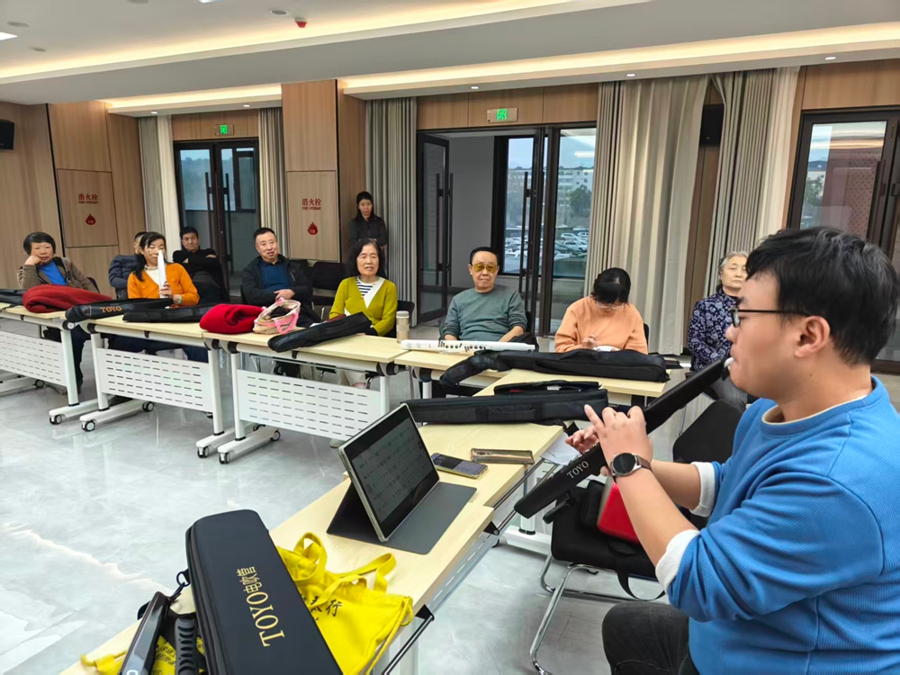 社区秉持“居民需要什么,社区就尽力办什么”的服务理念,将居民需求转化为社区工作目标。经过对课程难度、普及度、趣味性及硬件条件的综合筛选,并结合多数居民的意愿,电吹管这一易上手、音色美、表现力强的乐器脱颖而出,成为本次“居民点单”活动的首选,并于每周四下午免费为居民开设学习课堂。