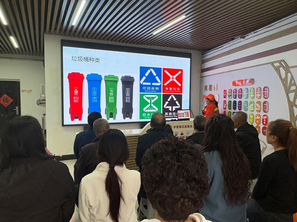 随后,文明实践宣讲员通过PPT系统讲解“可回收物、厨余垃圾、有害垃圾、其他垃圾”四大类别的划分标准、正确投放方法及后续处理流程,帮助居民轻松掌握文明分类技能。