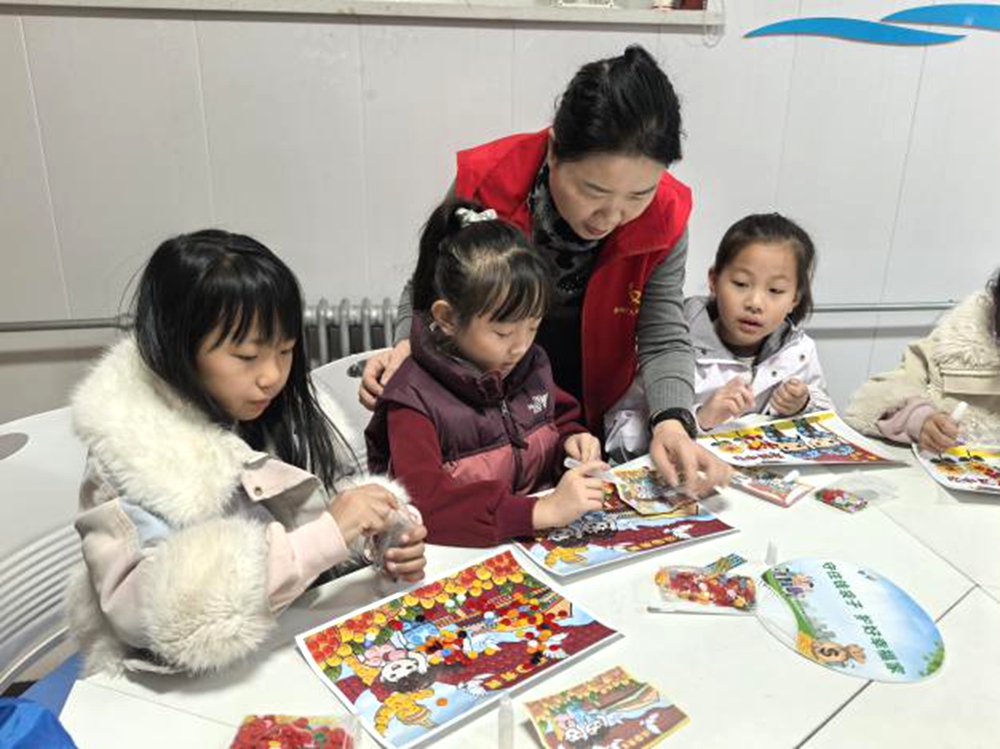 文明山西网讯 11月9日,阳泉市矿区贵石沟街道小河滩社区党委以“十刻同行 共建同心”共建日为契机,联合小河滩小学开展“童心向党 ‘扣’响未来”纽扣手工制作主题活动,通过红色故事分享与创意实践相结合的形式,让红色基因在互动中浸润童心。