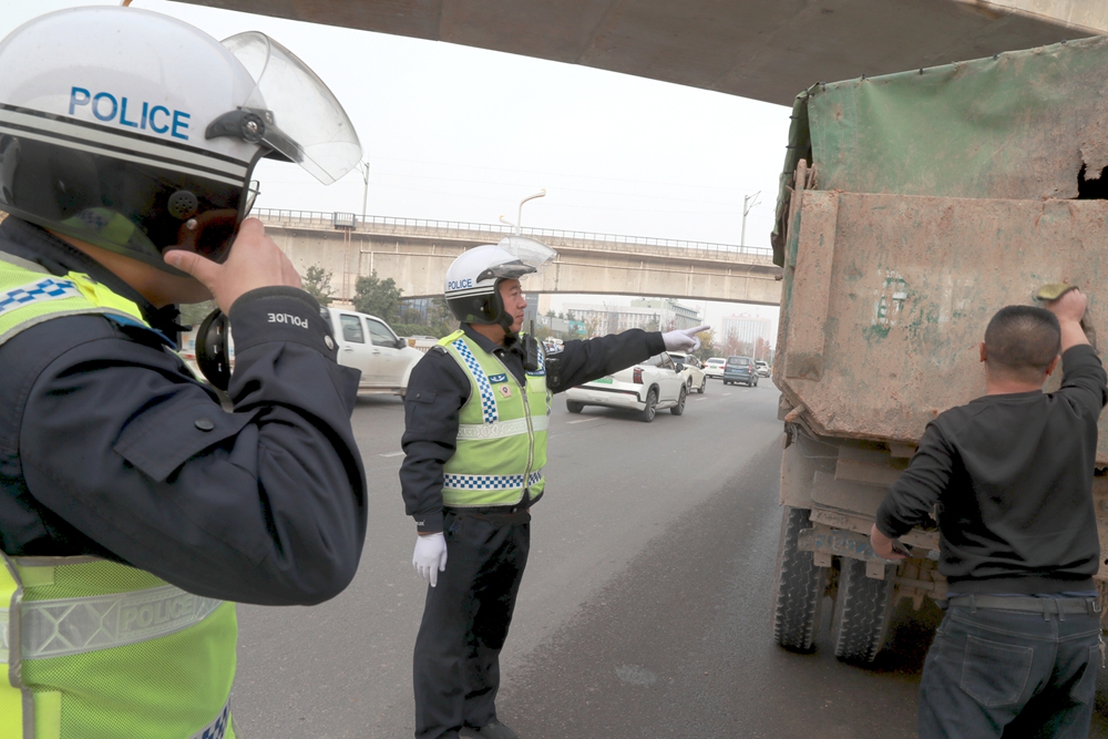 文明山西网讯 11月11日,运城市公安局盐湖分局交警大队一线中队民辅警结合辖区交管实际,持续加大辖区渣土车、商砼车的整治力度,严查严管渣土车、商砼车等大型车辆交通违法行为,净化秋冬季道路交通环境。