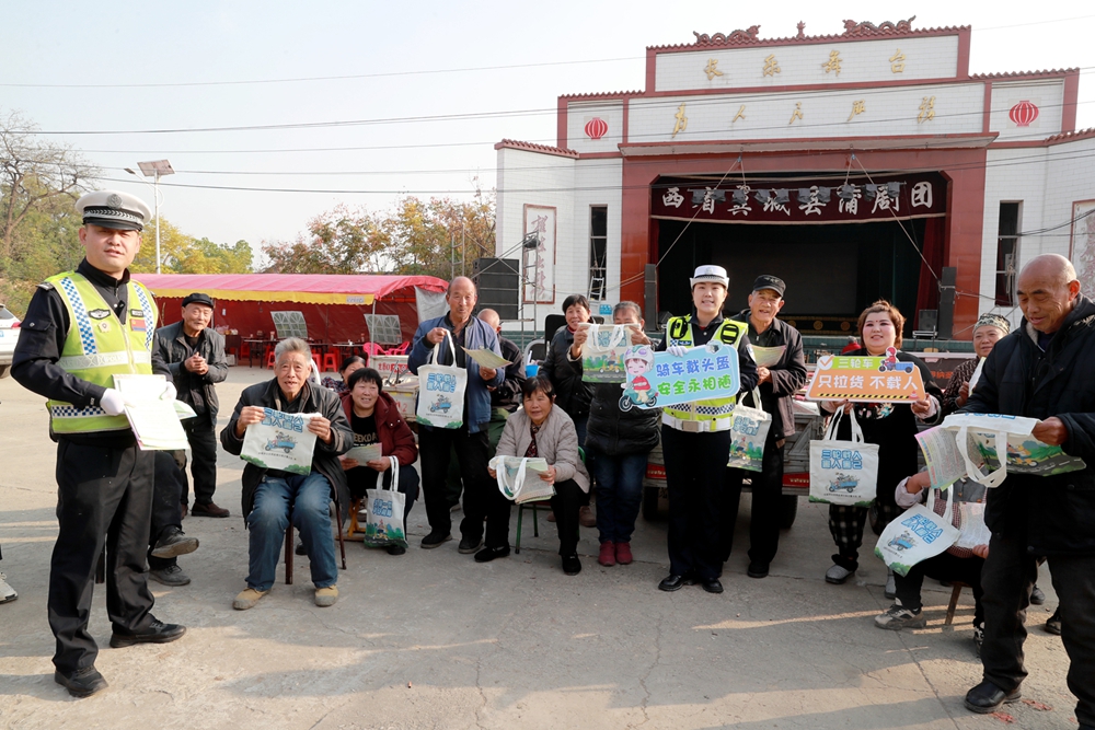 文明山西网讯 11月12日,运城市公安局盐湖分局交警大队宣传科和包村民警结合10月份辖区内发生的亡人交通事故研判分析结果,深入龙居镇长乐村开展以案说法警示教育精准宣传活动,通过身边事教育身边人,再次敲响交通安全“警钟”。