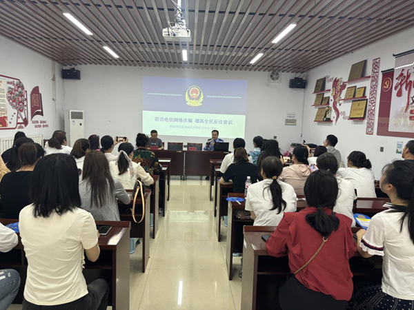 文明山西网讯 5月21日,阳泉市城区南山路街道阳光社区举办“警民联动防电诈 街社齐心护安全”防电信诈骗案例主题宣讲活动,邀请到阳泉市公安局城区分局反诈中心警官项尚为大家带来了一场生动细致的反诈案例讲座。南山路街道政法委员马崇华、各社区专干、网格员及居民群众共计50余人参加。