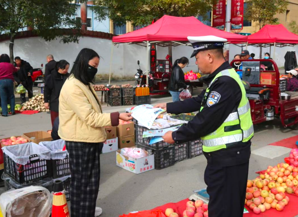 文明山西网讯 2025年12月2日,是第十四个全国交通安全日,今年的宣传主题是“文明交通 礼行天下”,为迅速掀起“122”全国交通安全日宣传热潮,营造浓厚的交通安全宣传氛围。根据临汾市公安局交警支队的安排部署,近日,临汾公安交警霍州交警大队民辅警利用农村赶集日人流集中的有利时机,走进辖区大张集市,开展了一场贴近群众生活的交通安全宣传活动。