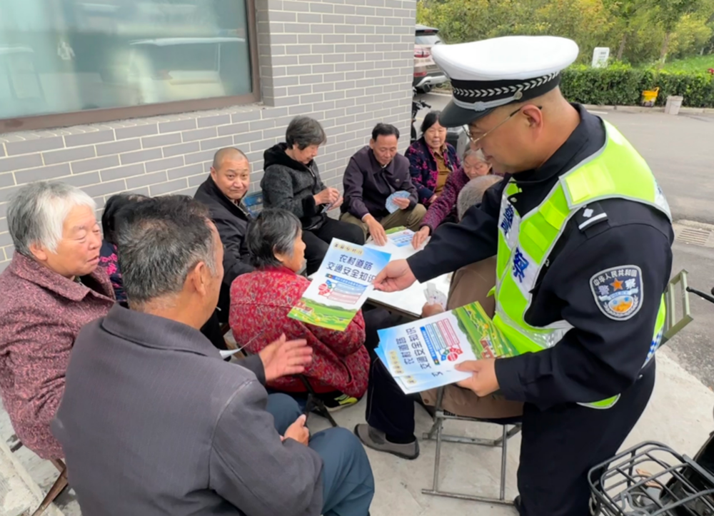 活动现场,民辅警结合农村道路出行特点,用通俗易懂的“家常话”,向过往老年群众重点讲解了步行、骑行电动车、乘坐农用车等常见场景的安全注意事项:提醒老人过马路时要“一停二看三通过”,不随意横穿马路、不在道路上逗留闲聊;骑行电动车务必佩戴安全头盔,不逆行、不违规载人;拒绝乘坐无牌无证、超员超载的农用车、三轮车,自觉远离交通安全风险。
