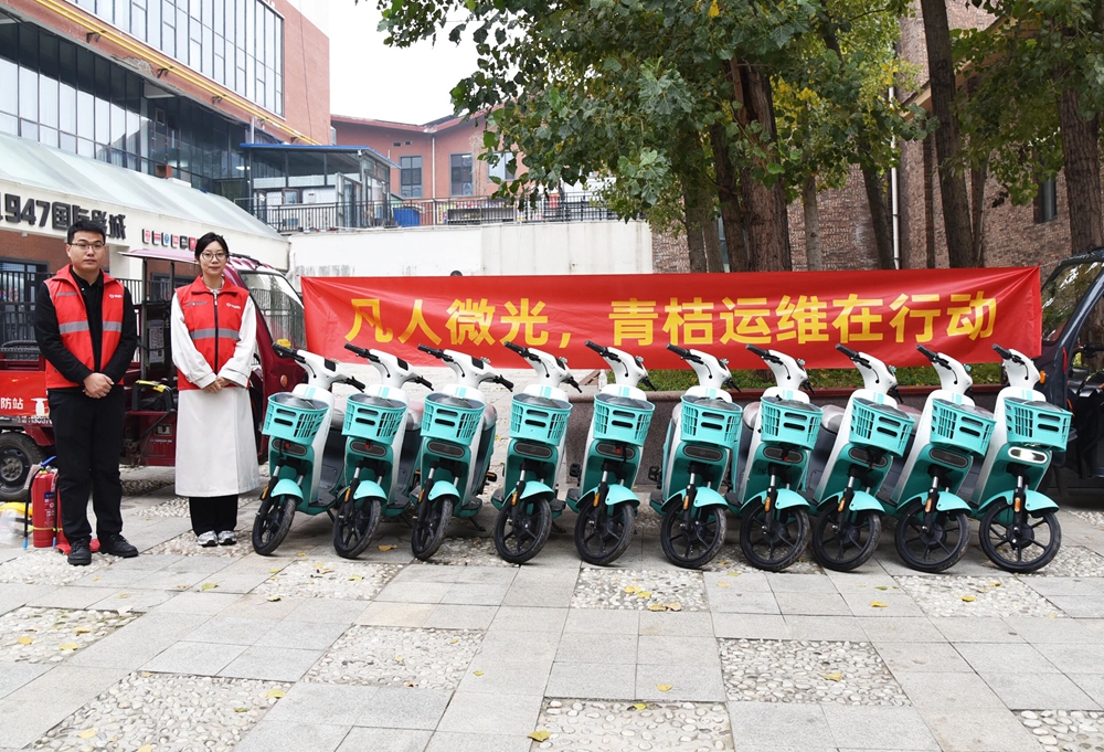 共享单车的运维车辆也被赋予新使命——化身流动消防应急点。车斗内整齐配备灭火器、隔热手套、防冲击面屏、电池钩、灭火毯等基础消防器材。经过专业培训的运维人员,在日常工作中可第一时间应对突发火情,成为城市中的灭火“轻骑兵”。同时,他们还在与市民互动中解答消防疑问,普及安全知识。