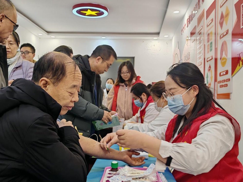活动当天,阳泉市肿瘤防治研究所肿瘤医院医务人员早早布置好设备,划分登记区、检测区、咨询区三大功能区域。作为核心特色项目,精准度高、便捷性强的幽门螺杆菌抽血检测,成为居民关注焦点。在社区工作人员与志愿者引导下,居民依次完成信息登记、抽血取样,同步有序进行血压、血糖测量,流程高效顺畅。检测现场,医务人员细致记录数据并提供个性化指导:“大爷,您血压偏高,需低盐饮食、按时服药”“阿姨,检测阴性也要坚持分餐制”。对阳性居民,他们详解治疗路径与注意事项;对阴性居民,则重点科普预防知识。“以前对幽门螺杆菌了解少,怕麻烦没检测,这次家门口免费做专业检查,还学到实用知识,收获太大了!”居民张阿姨欣喜地说道。