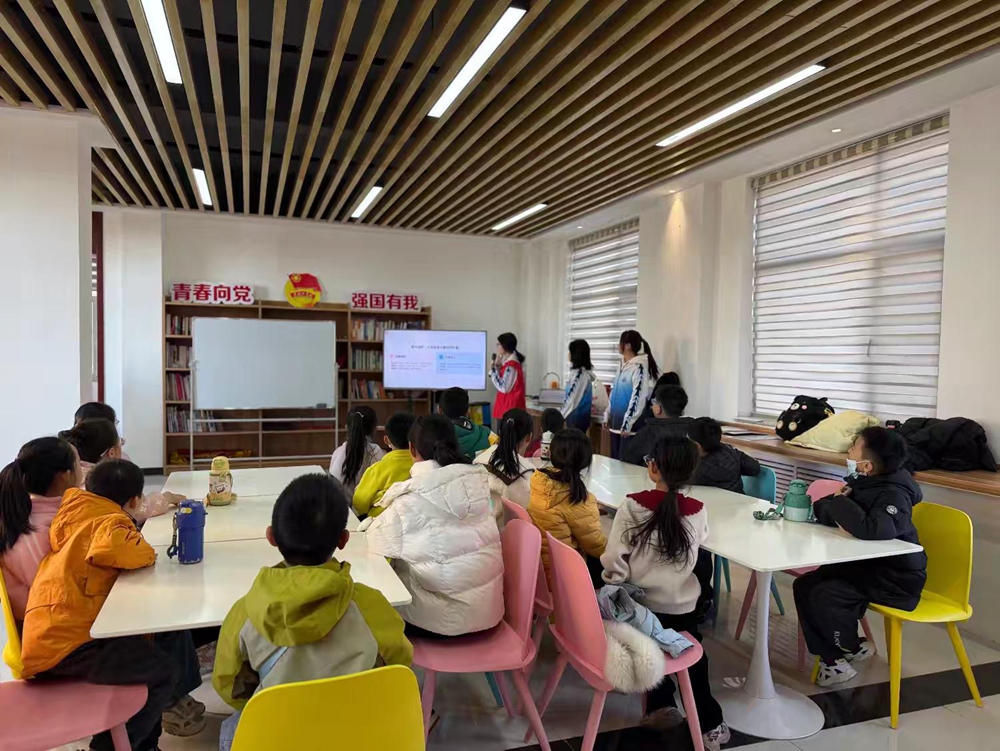 “站成丁字步,身体挺挺拔,声音更响亮!”“黄文秀班”的学子们化身“小老师”,细致讲解朗诵技巧。绕口令挑战环节,《八百标兵奔北坡》的节奏声回荡在现场,孩子们咬字越来越清晰;重音停连教学中,一句“我喜欢你”的不同表达,让大家瞬间懂了“语气藏着小情绪”。随后,志愿者带领孩子们逐句朗诵《春》《金色花》等经典范文,把刚学的技巧立刻用起来,童声阵阵充满感染力。