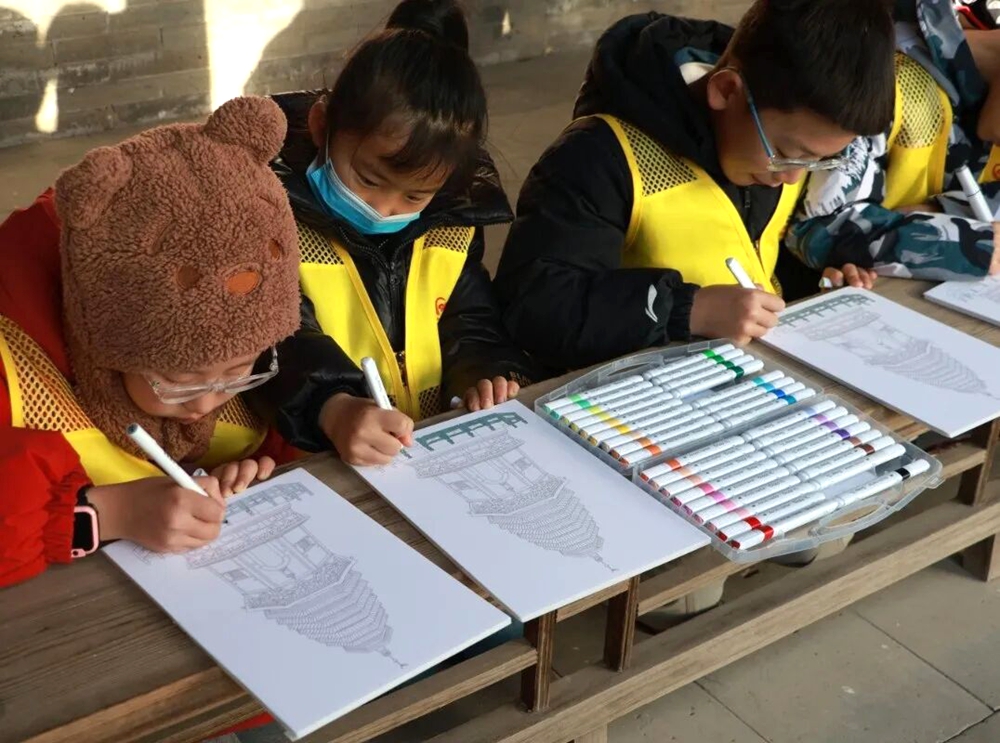 在创意实践环节,青少年以小组为单位,用画笔描绘心目中圆觉寺的未来图景。有的将古塔与数字化技术结合,构想“沉浸式文物展览”;有的在寺院周边添绿植、建步道,打造生态文化公园;还有的画下青少年身讲解文物的场景,传递传承使命。一幅幅色彩斑斓的作品,既保留古建风貌,又注入现代活力,展现出少年们对文化遗产创新发展的期待。