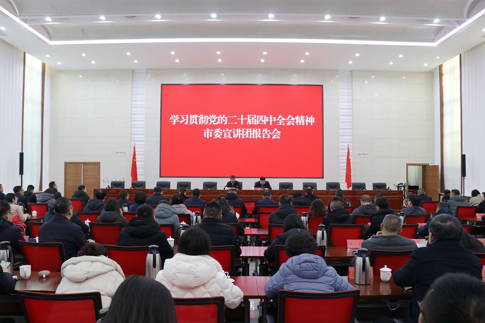 文明山西网讯 12月2日,学习贯彻党的二十届四中全会精神市委宣讲团报告会在太原市万柏林区举行。太原市委宣讲团成员、太原市委宣传部副部长、太原市文明办主任赵建春作宣讲报告。