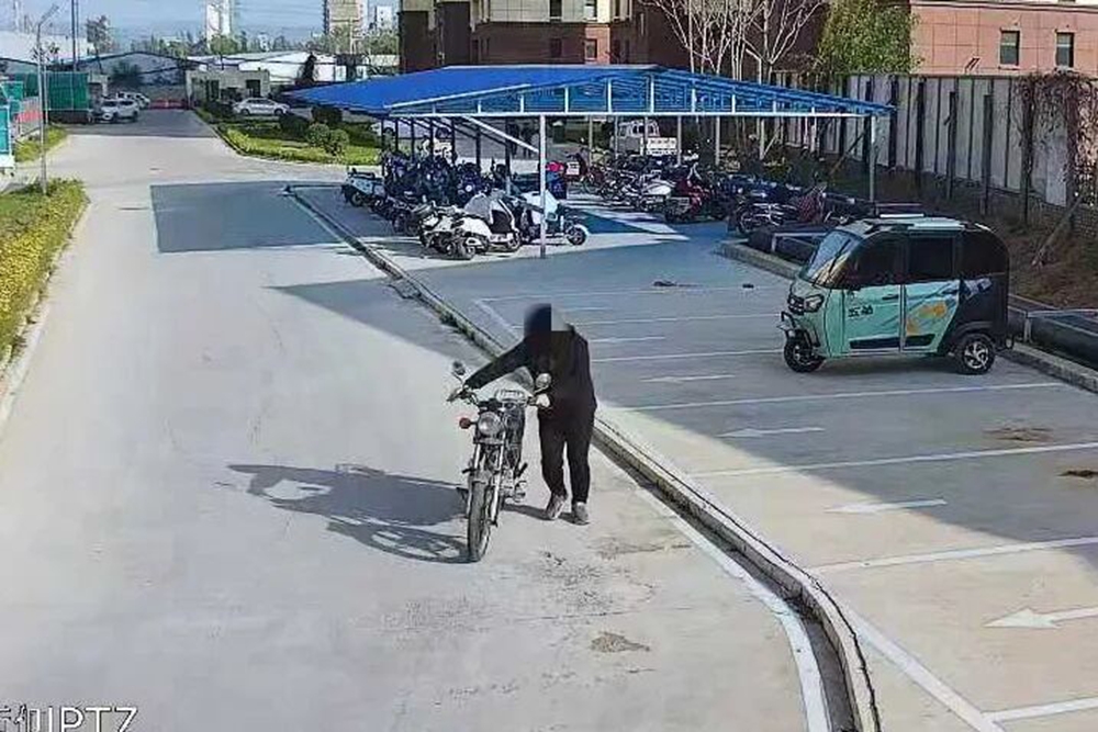 接警后,民警翟元凯立即带队赶赴现场,调取周边监控视频,很快锁定一黑衣男子。监控显示,他将车推出车棚后,在附近徘徊了一会儿,见四下无人便离开现场。