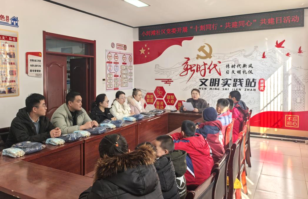 文明山西网讯 12月10日,阳泉市矿区贵石沟街道小河滩社区党委以“十刻同行 共建同心”共建日为契机,联动辖区驻地单位中小企业五公司党组织开展“党建共建暖童心 寒冬送暖护成长”困境儿童慰问活动,为孩子们送上帽子、围巾、手套等御寒物资,在寒冬中传递温暖。