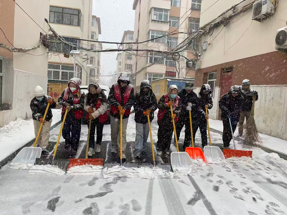 不一会儿,社区工作人员、志愿者、企业工作人员都陆续到岗,大家身穿红马甲,手持铁锹、扫帚、雪铲等工具,分工协作、默契配合,形成了一道冬日里最温暖的风景线。大家不畏严寒、干劲十足,重点对社区主次干道、背街小巷、单元门口等人员密集区域的积雪进行清扫。有的弯腰清扫,有的奋力铲除压实的冰层,有的及时清理道路边缘积雪,防止二次结冰,不放过任何一处易滑路段,全力为居民开辟出安全、通畅的出行通道。
