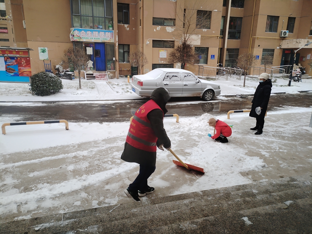 文明山西网讯 12月12日,太原市路面积雪结冰给居民出行带来安全隐患,太原市小店区黄陵街道黄陵社区两委迅速响应,联合物业、网格员、志愿者及街办包村居领导组建“清雪攻坚队”,以“雪停人动、人到雪清”为原则,开展全方位清雪除冰,守护居民“脚下安全”。