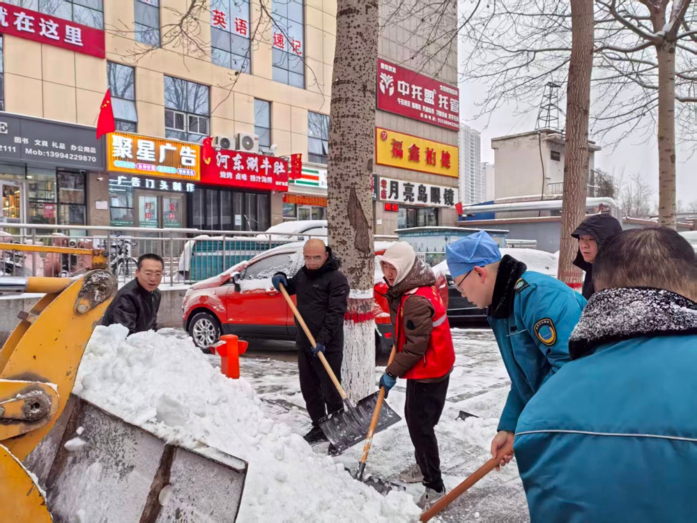 在党员干部的带动下,社区志愿者、热心居民、沿街商户纷纷响应,主动从家中、店里拿出工具,加入清雪队伍。曾经的“旁观者”化身“行动者”,昔日的“各扫门前雪”变为如今的“共扫社区路”,年龄不同,因同一个心愿凝聚在一起。铁锹与地面摩擦的“沙沙”声、邻里间相互鼓劲的话语声、工具碰撞的清脆声响,交织成冬日里最动人的“暖心交响曲”,驱散了严寒,温暖了街巷。
