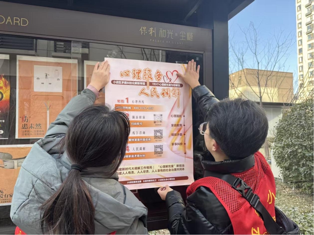 文明山西网讯 近日,太原市小店区黄陵街道东峰社区在保利和光尘樾小区开展“心理服务 人民调解”宣传活动。