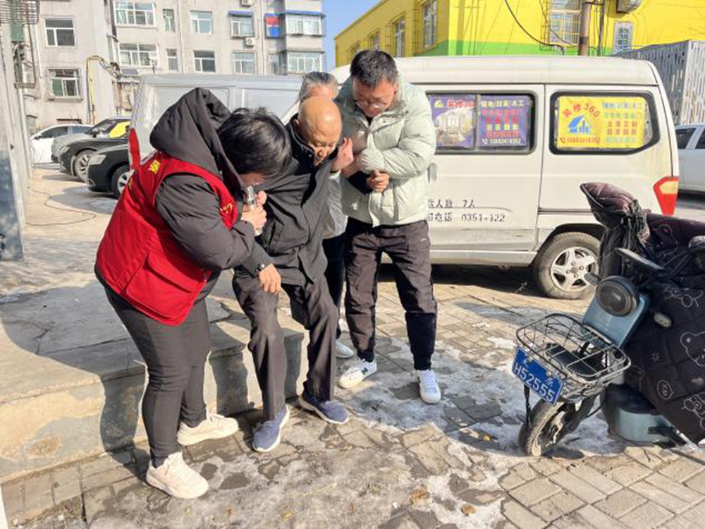 文明山西网讯 12月18日,太原市尖草坪区光社街道七府坟南街第一社区的一位退休老党员单独外出途中不慎摔倒在地,无法自主起身,危机时刻,社区工作人员及时伸援手,妥善处置,用实际行动诠释为民服务的初心。