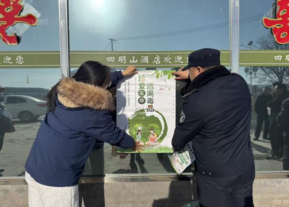 文明山西网讯 近日,晋城高平市北诗派出所民警联合禁毒社工,在辖区餐饮门店开展“禁毒宣传进饭店 平安守护暖民心”主题宣传活动。