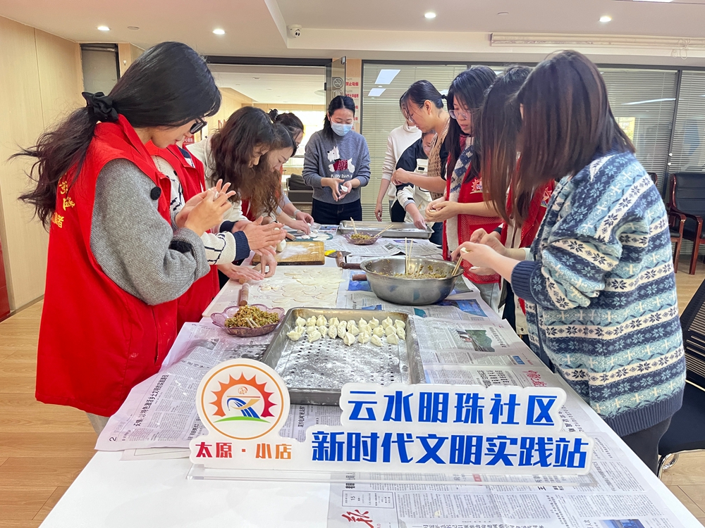 文明山西网讯 12月19日,太原市小店区坞城街道云水明珠社区新时代文明实践站开展了以“暖心饺子香 驿站情更浓”为主题的邻里团圆活动,邻里间齐聚一堂,在欢声笑语中共享美好时光。