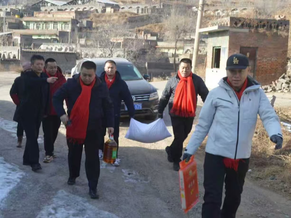 文明山西网讯 12月19日,吕梁孝义市兑镇镇后庄村委大院里,村内外41名属马青年干劲十足,将一袋袋白面等慰问品搬上汽车、三轮车和摩托车,为全村716名60周岁以上老人送上冬日里的暖心关怀;12月20日上午,他们一行走访慰问6户特困户和困难家庭,让敬老爱老的暖流在乡土间汩汩奔涌。