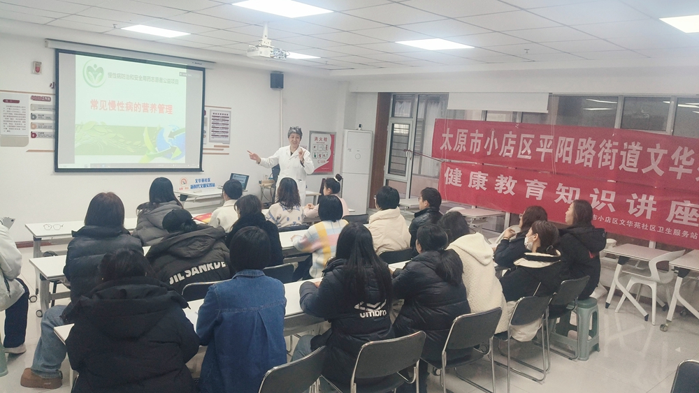 文明山西网讯 12月23日,太原市小店区平阳路街道文华苑社区新时代文明实践站联合文华苑社区卫生服务站举办了主题为“常见慢性病的营养管理”健康讲座。