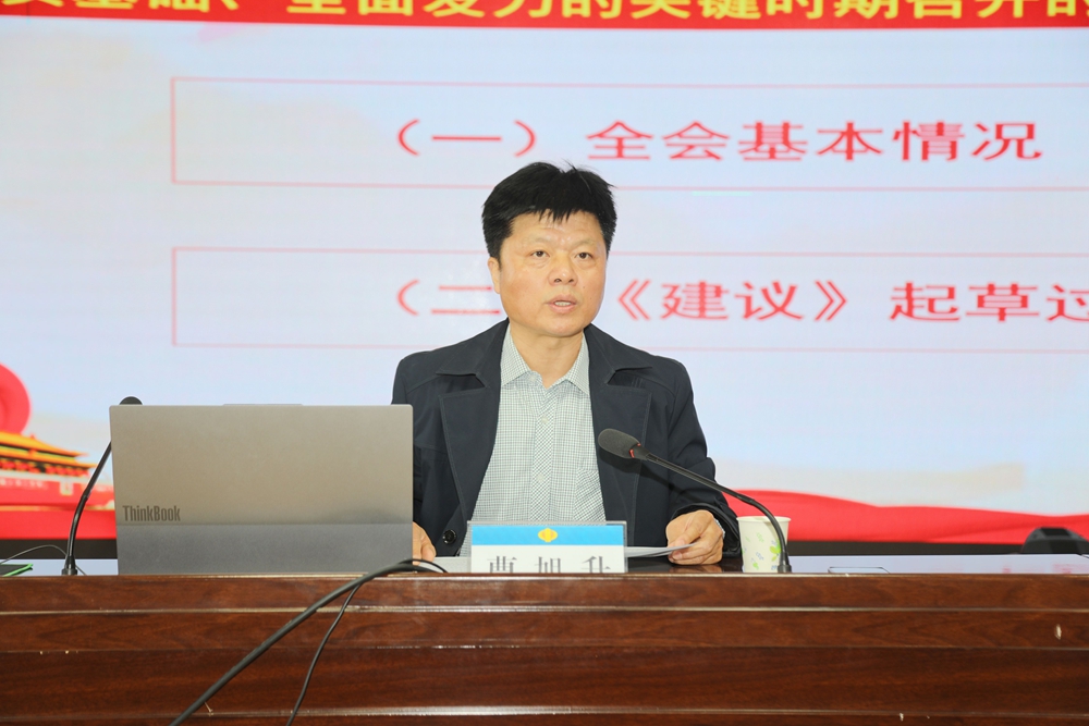 培训班特邀平陆县县直工委主持日常工作的副书记曹旭升作专题授课。曹旭升先后在群团、乡镇、机关工作,历任该县张店镇团委书记和党政办主任、县委宣传部办公室主任、政协文化文史和学习委员会主任等职务,深耕党的理论研究与实践工作多年,政治立场坚定,理论素养深厚,在理论武装、政策解读等方面有着扎实的功底和独到的见解,特别是在推动县直机关党建规范化建设、党务干部培训、模范机关创建等多项重点工作中取得了显著成效。他围绕党的二十届四中全会的基本情况、《建议》起草过程、重要意义以及“十五五”时期的指导方针、主要目标、战略任务和重大举措等内容,从五个方面进行了系统阐释和深入解读,既有理论高度,又有实践深度,更有情感温度,为该局税务干部准确把握全会精神实质、理清工作思路、抓好贯彻落实提供了有力指导和重要启发。