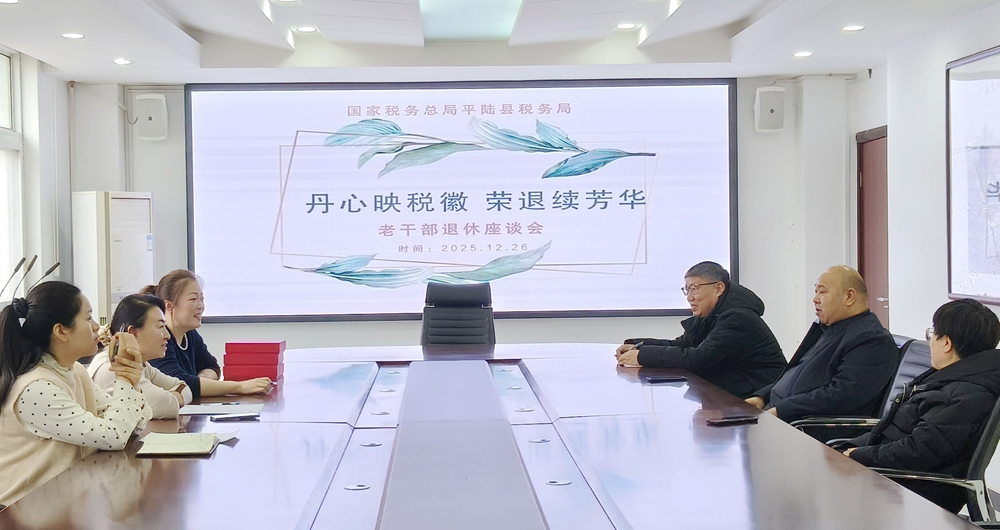文明山西网讯 12月26日,国家税务总局平陆县税务局召开“丹心映税徽 荣退续芳华”税务干部退休座谈会,为2025年度光荣退休的5名税务干部送上诚挚祝福与崇高敬意。