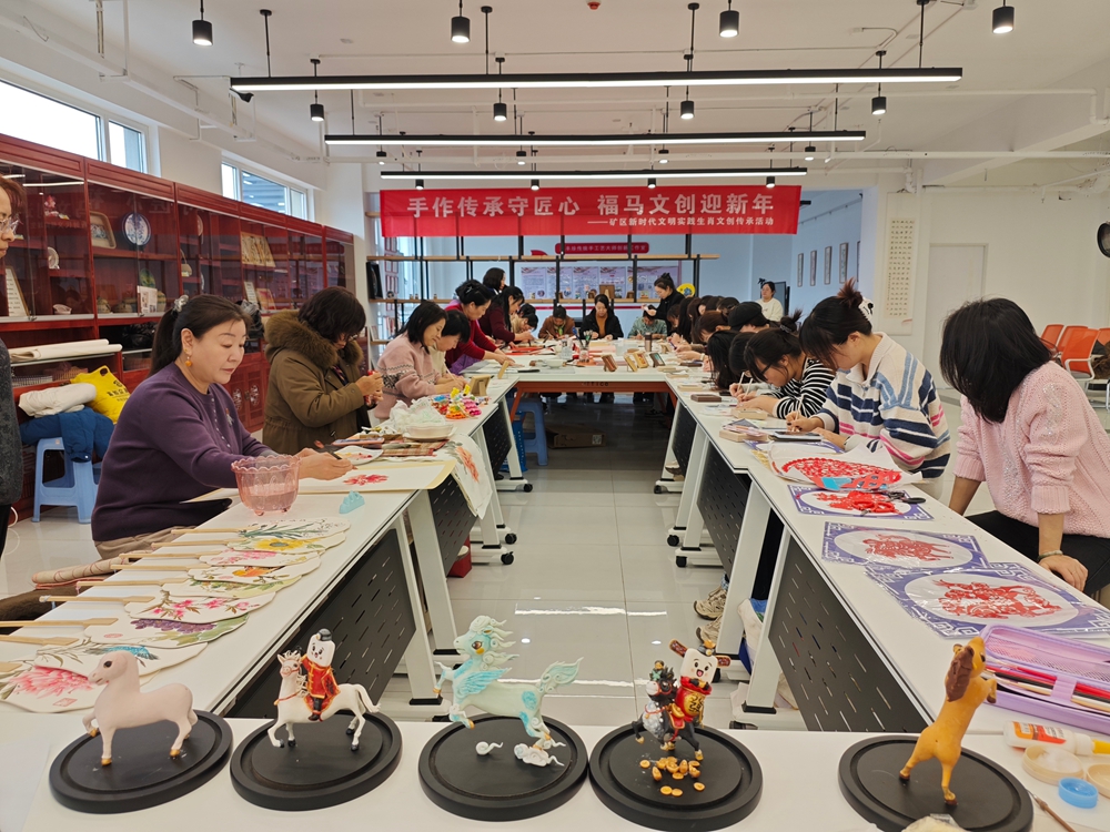 本次活动由矿区新时代文明实践中心主办,精准对接群众精神文化需求,精选刺绣、剪纸、面塑、沙画等群众喜闻乐见的传统手作形式,特别邀请矿区本地非遗传承人及手工技艺专业老师现场授课指导。活动现场,老师们不仅细致讲解马年生肖文化内涵、传统民俗知识,还系统梳理相关非遗技艺的历史渊源,同步融入文明过节新风尚宣传,有效提升了群众的文化自信、非遗保护意识和文明素养。
