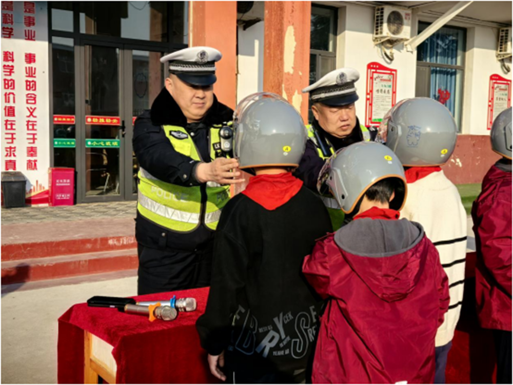 活动中,民辅警结合校园周边交通环境特点,通过播放交通安全警示短片、发放交安宣传手册、发放安全头盔、趣味互动问答等形式,用通俗易懂的语言向同学们讲解交通安全常识。同时结合真实交通事故案例以案释法,着重提醒大家坚决抵制闯红灯、随意横穿马路、驾乘车辆不戴安全头盔等交通陋习,时刻守护自身安全。