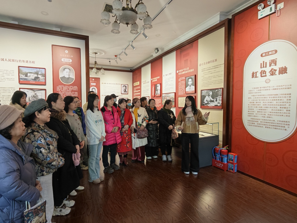 在区文旅发展中心工作人员李振瑶的引导与讲解下,志愿者们依次参观了山西金融源流、民国山西金融、山西红色金融、当代山西金融、新时代山西金融五个展区。从帝尧舜禹时期奠定的诚信伦理,到猗顿提出的“上有利于国,下有济于民”的金融使命;从北魏“太和五铢”的货币改革,到明清票号的兴衰变迁;从红色边区银行的烽火岁月,到新时代山西金融的高质量发展,一幅幅珍贵的历史图片、一件件实物展品、一段段生动的历史故事,让志愿者们全面领略了山西金融文化的深厚底蕴与独特价值。志愿者们始终保持着浓厚的学习热情,认真聆听讲解,不时驻足端详展品,详细记录关键历史节点与金融文化精髓。