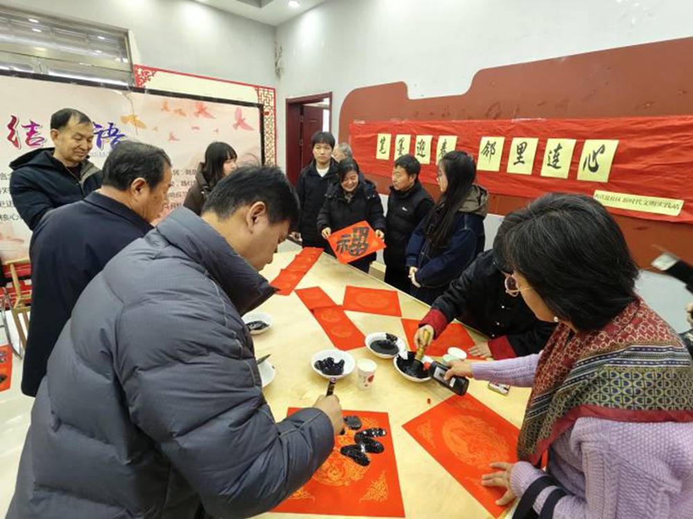 文明山西网讯 1月13日,阳泉市城区北大街街道西营盘社区党群服务中心组织举办了“笔墨迎春·邻里连心”主题送春联活动。活动特别邀请阳泉市市文联、阳泉市美协书法家及画家现场挥毫创作,并组织志愿者为辖区居民送上饱含深情的“文化年货”和新春祝福。